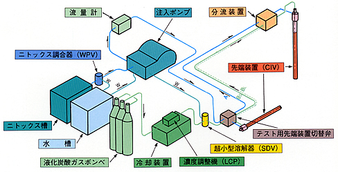 | 硬化剤である炭酸水中の炭酸ガス濃度をダイヤル1つで瞬時かつ自在に調整できるため、任意のゲルタイムの材料をロス無く必要量のみ得ることが出来ます。 | ||