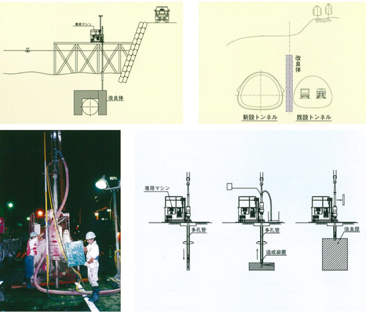 従来工法では不可能な大深度(40m以上)に対応できる地盤改良法です。