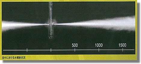 大容量噴射においても高い噴射効率を維持する特殊専用モニターを開発した結果、水平ニ方向噴射による高速施工を可能としました。 |